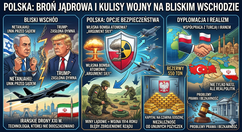 Polska broń jądrowa staje się tematem coraz gorętszych debat w obliczu destabilizacji globalnego bezpieczeństwa. W najnowszym programie telewizji NL24.tv, redaktor Marcin Truk gościł wybitnego eksperta, którym jest profesor Mirosław Piotrowski[cite: 1, 2]. Rozmowa skupiła się na dramatycznych wydarzeniach, jakie generuje obecny konflikt na Bliskim Wschodzie, oraz na tym, jak Polska powinna pozycjonować się w nowej, brutalnej rzeczywistości geopolitycznej[cite: 3, 4].