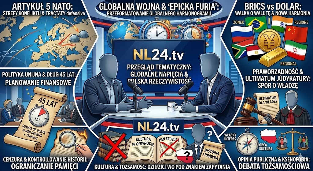 W najnowszym programie NL24.tv redaktor Grzegorz Zawadzki gościł Stanisława Michalkiewicza. Znany publicysta w charakterystycznym dla siebie, bezkompromisowym stylu skomentował bieżące wydarzenia na arenie międzynarodowej oraz napiętą sytuację polityczną w Polsce. Od kulis konfliktu na Bliskim Wschodzie, przez plany grupy BRICS uderzające w potęgę dolara, aż po „wojnę o lektury” i głośne ultimatum sędziego Żurka wobec prezydenta – ta rozmowa rzuca nowe światło na procesy, które mogą zmienić oblicze współczesnego świata.