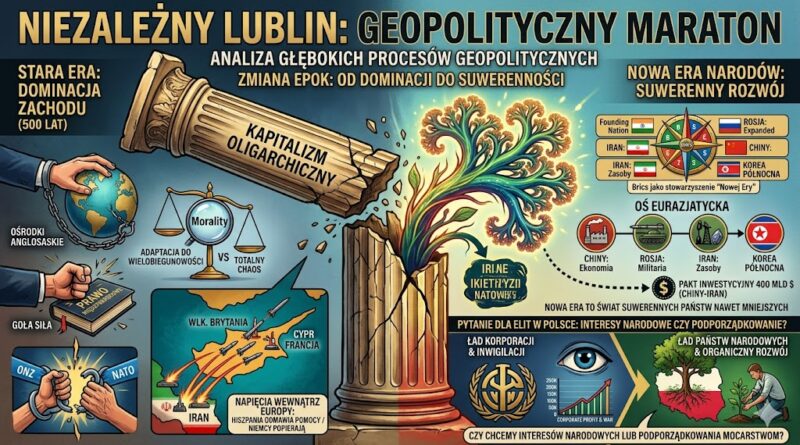 W ramach maratonu politycznego na kanale Niezależny Lublin, Grzegorz Zawadzki rozmawia z prof. Gracjanem Cimkiem. Analiza dotyczy głębokich procesów geopolitycznych,